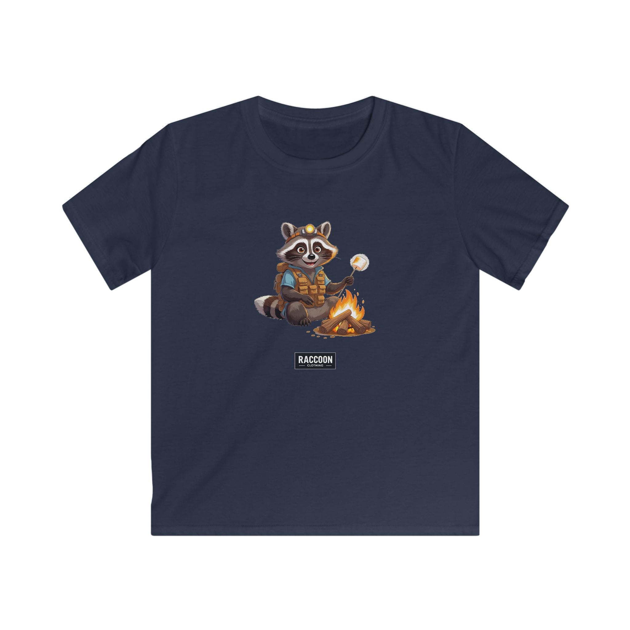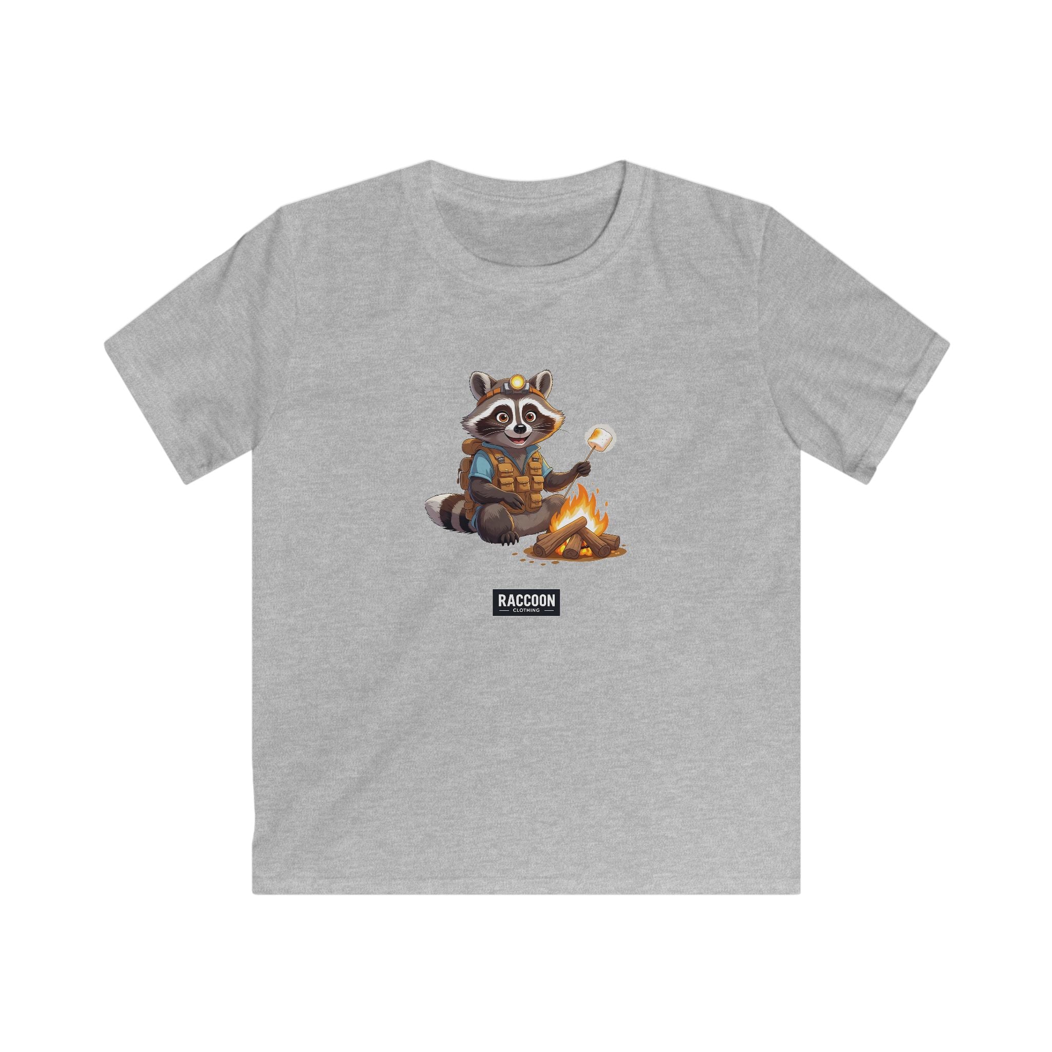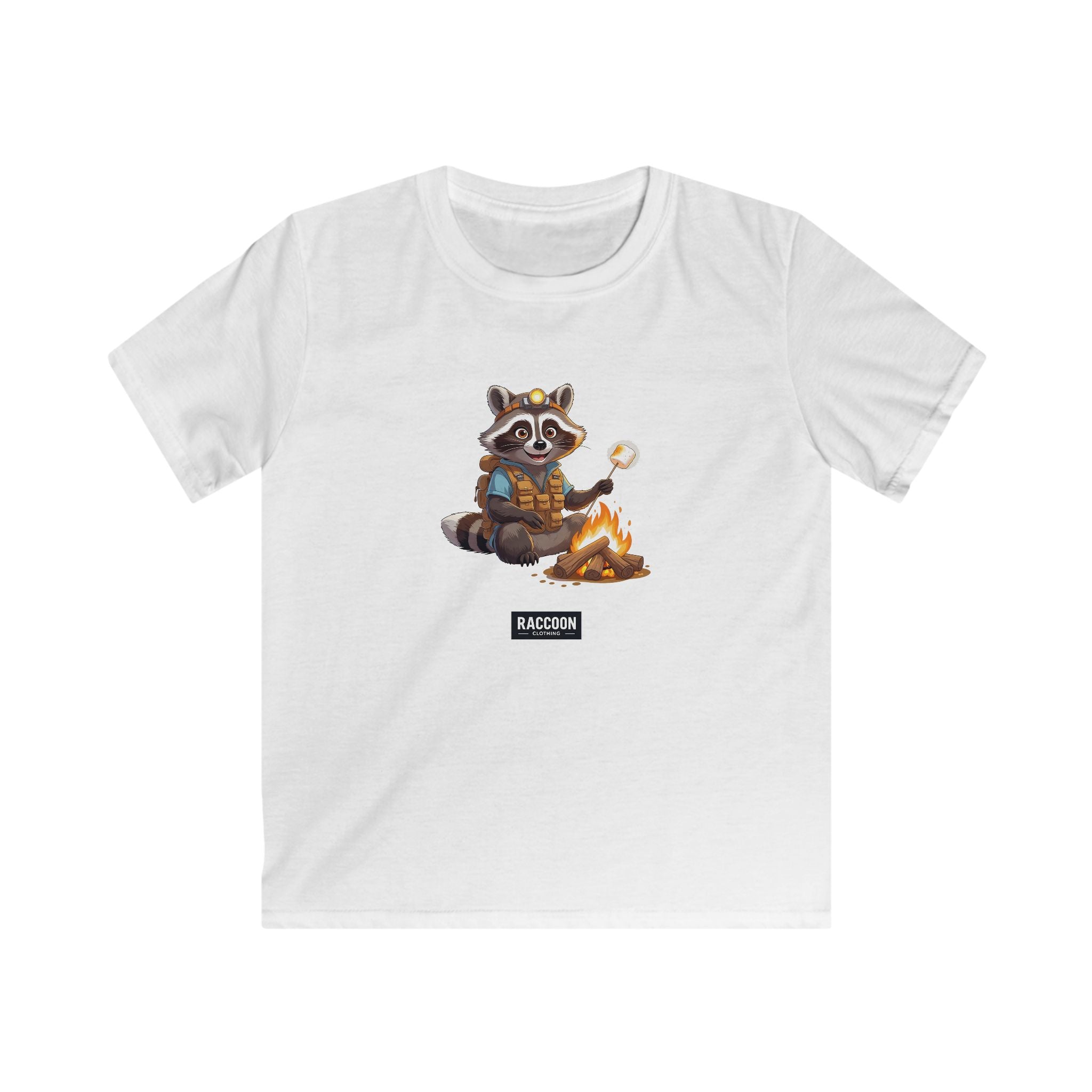 Abenteuerlust trifft Gemütlichkeit – das Pfadfinder Waschbär Kinder T-Shirt zeigt einen niedlichen Waschbären als Pfadfinder, der Marshmallows am Lagerfeuer röstet....