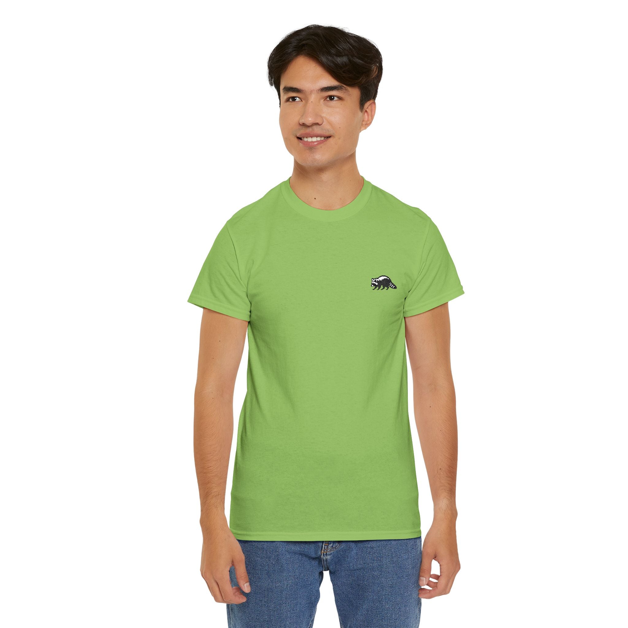 Our unisex heavy cotton T-shirt with the cool raccoon logo works for any occasion – whether you’re keeping it casual...