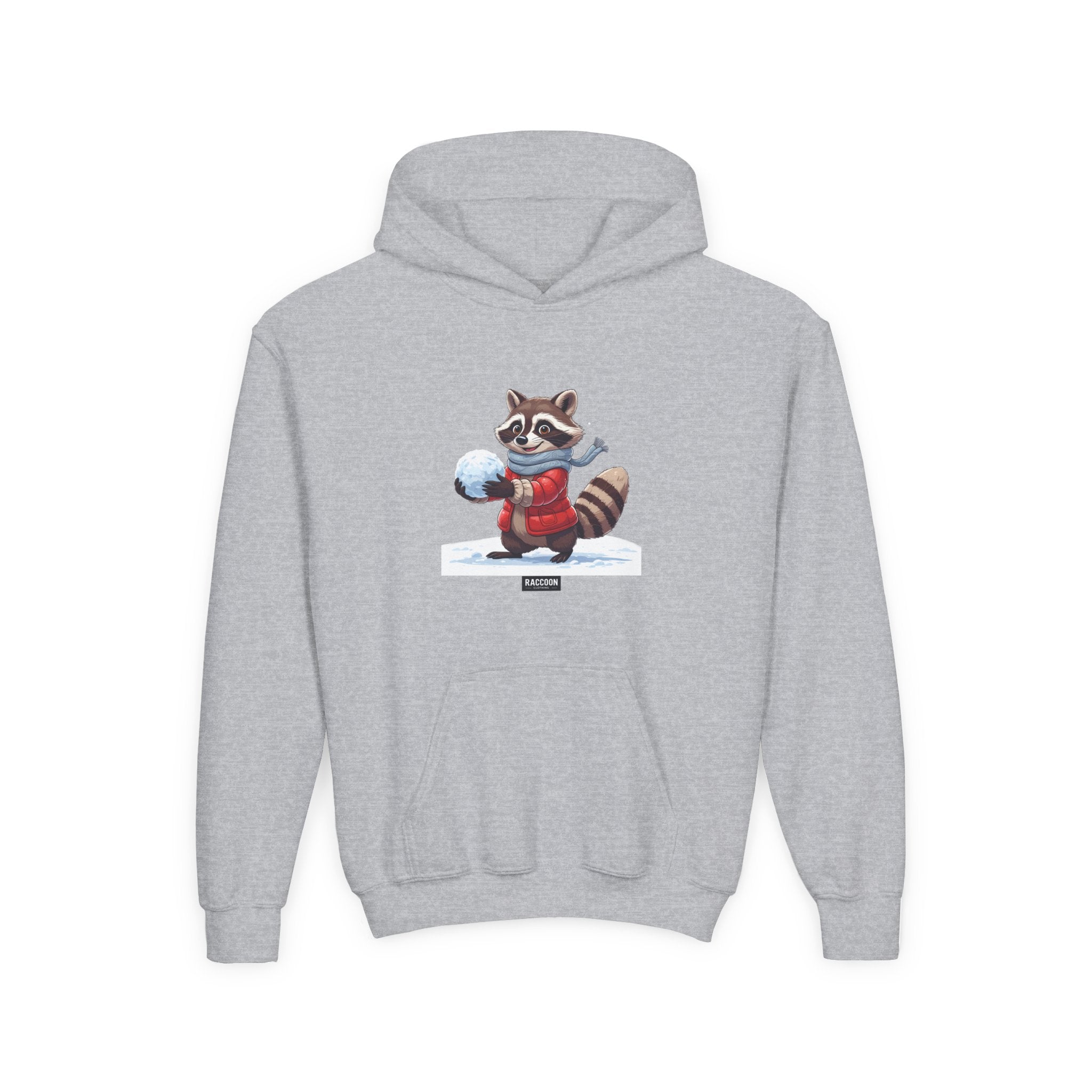 Get ready for frosty fun with this playful raccoon bundled up in a puffy red jacket and scarf, holding a...