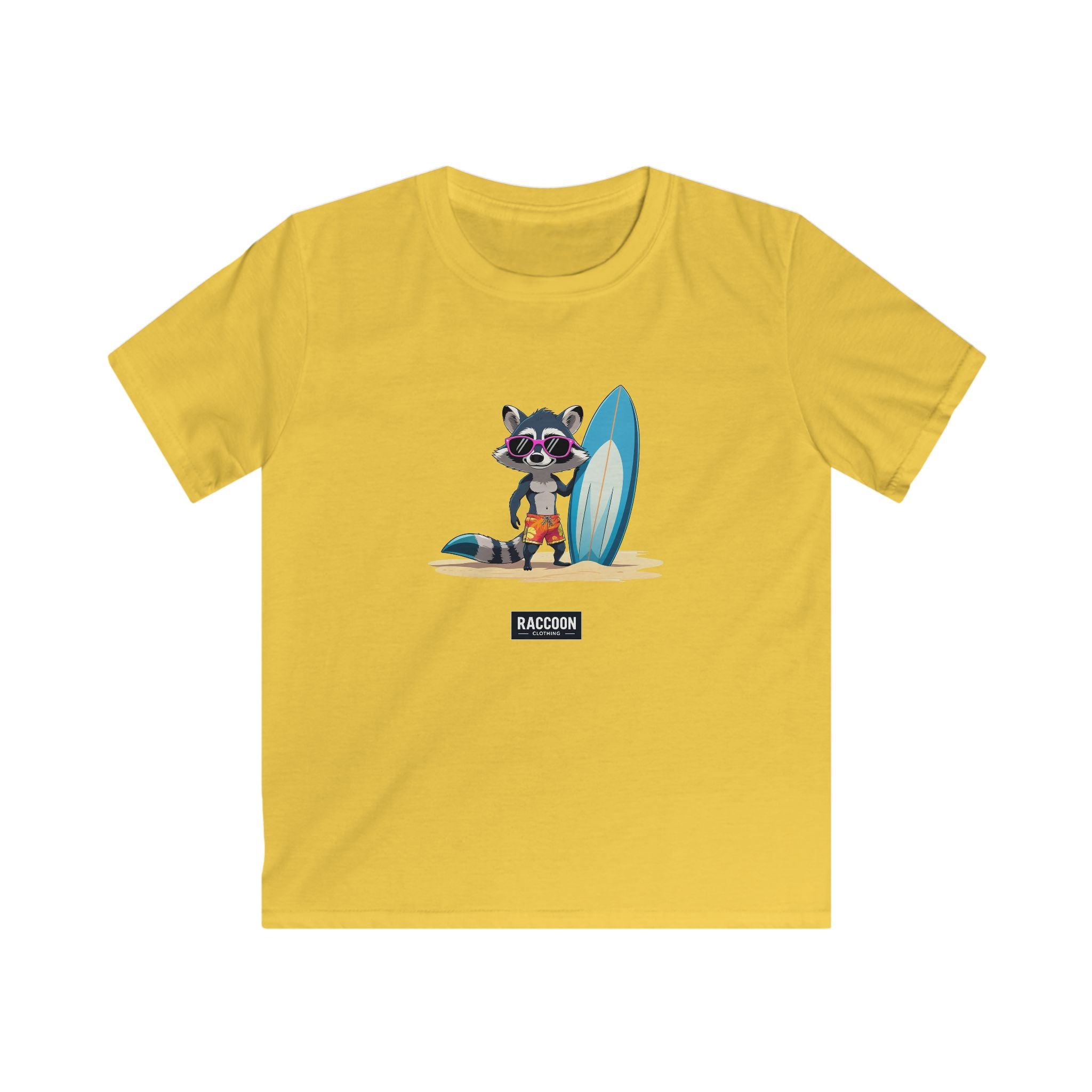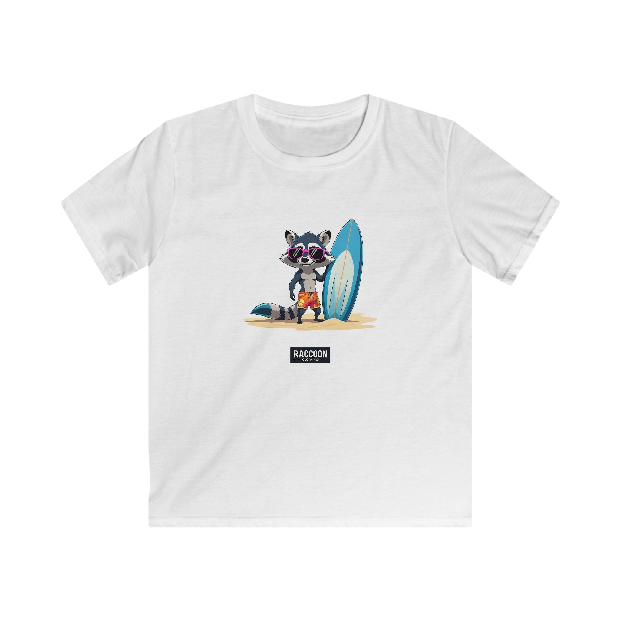 Featuring a chill raccoon rocking sunglasses, beach shorts, and a big surfboard, this design brings sunny-day energy, perfect for adventurers...